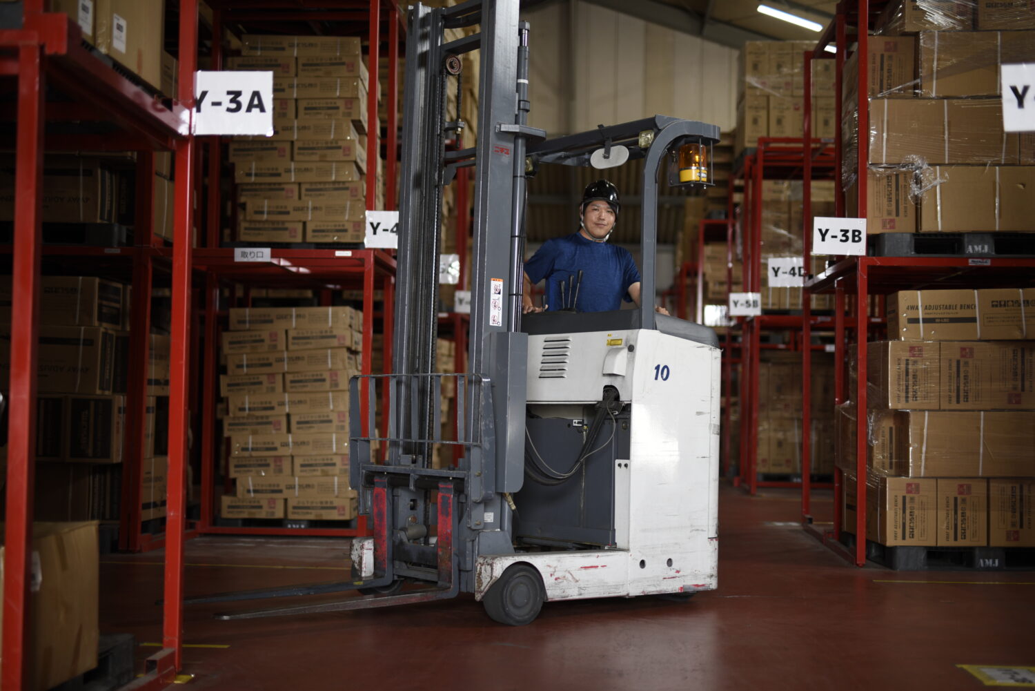 主に商品の出荷とコンテナの入庫をフォークリフトを使い行います。